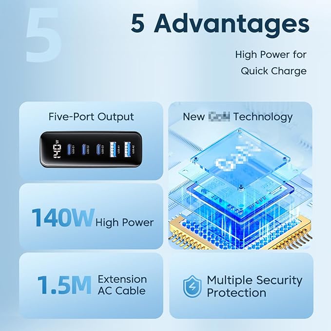 قدرة عالية للشحن: يوفر قوة شحن تصل إلى 140 واط لضمان شحن سريع.